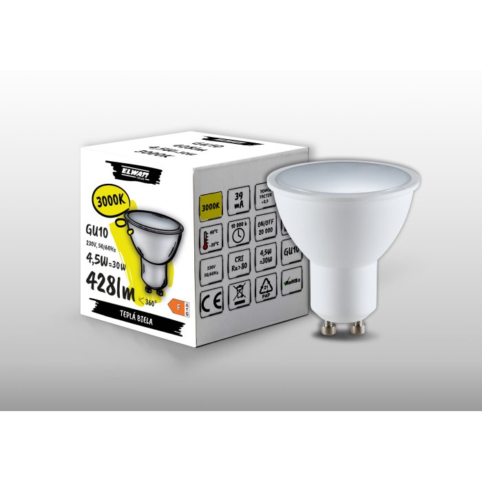 LED žiarovka GU10 4,5W/3000K - 428lm - ELWATT - ONLed - ELW-182